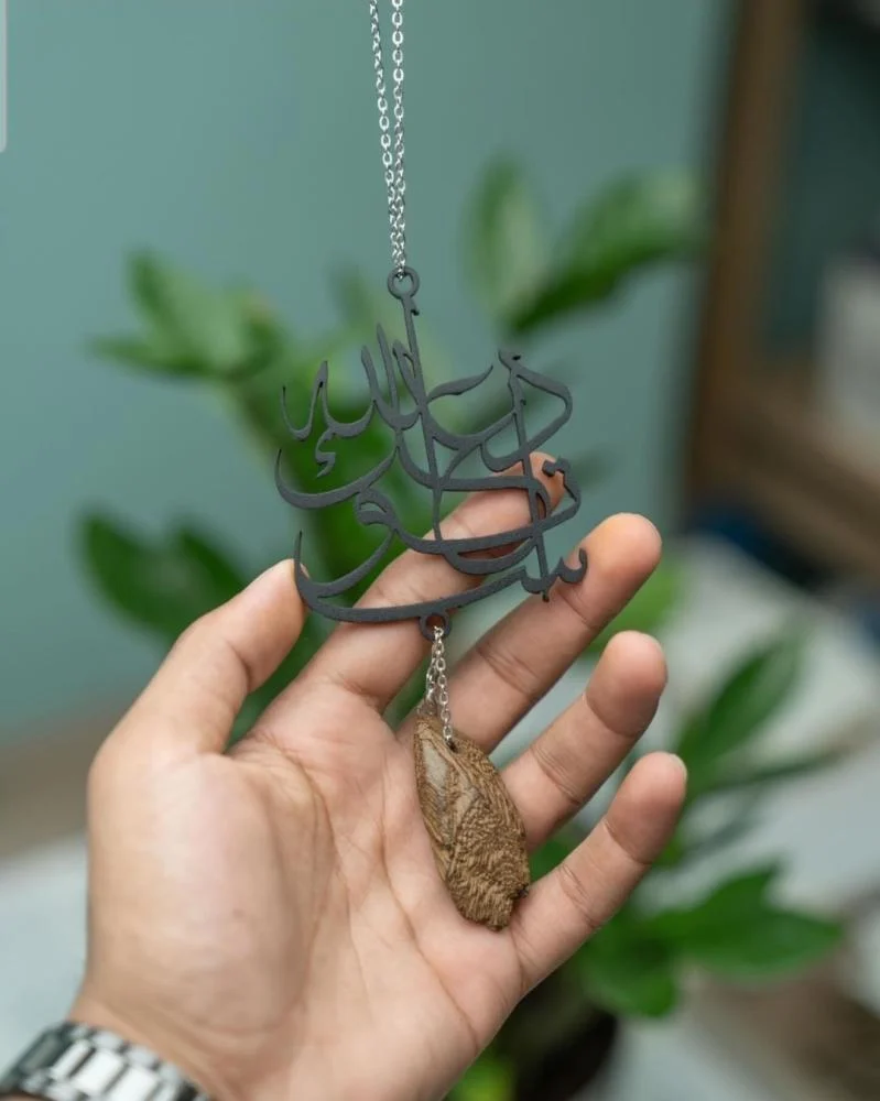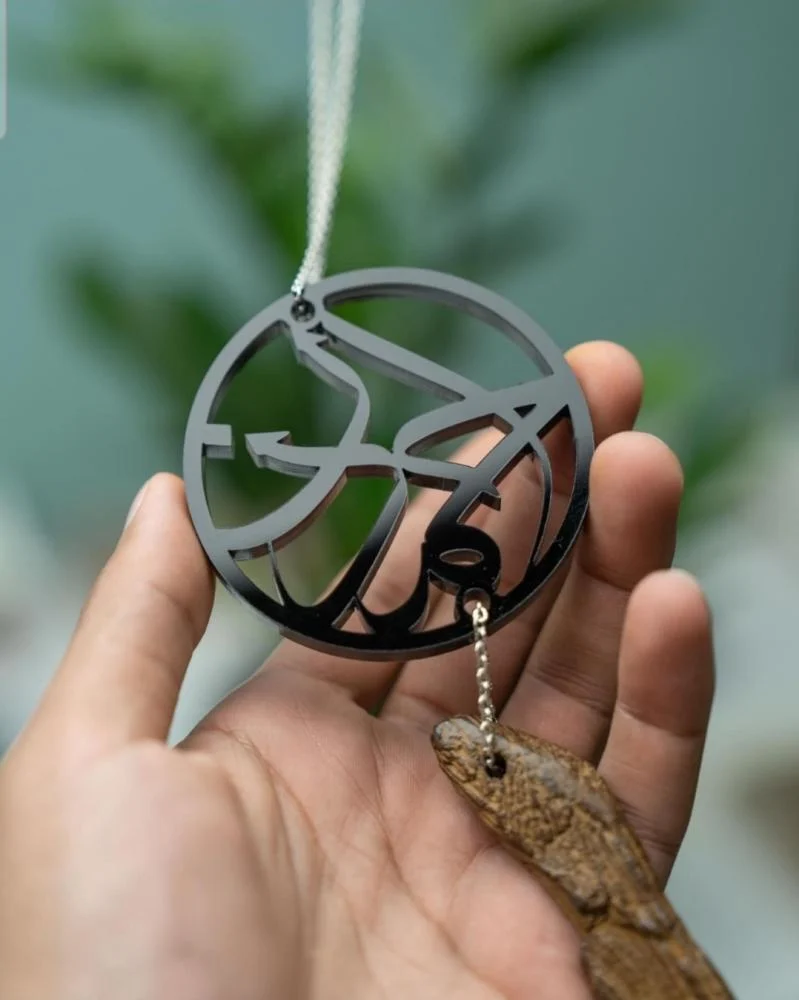 - صُنعت اشكال تعليقات سياره من الأكريلك الأسود اللامع والمتين بتقنيات حفر دقيقة، مع إطار دائري أنيق يبرز جمال التصميم ويضمن روعة التجربة والأناقة لسنوات طويلة.