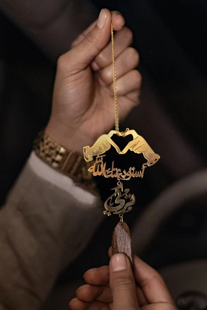 استمتع بتفاصيل تعليقتك الفاخرة، حيث يمكنك طلبها بالاسم أو عباره تعبر عن شخصيتك. متوفرة بلونين رائعين: ذهبي أو فضي، مع ضمان اللون لمدة سنتين. نقدم لك تجربة فريدة من نوعها حيث نمزج الهدايا بالاسم مع رائحة العود الفاخرة.