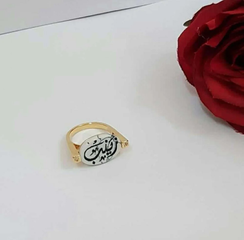 - خاتم بالاسم يحمل مزيجًا من الفخامة والبساطة.