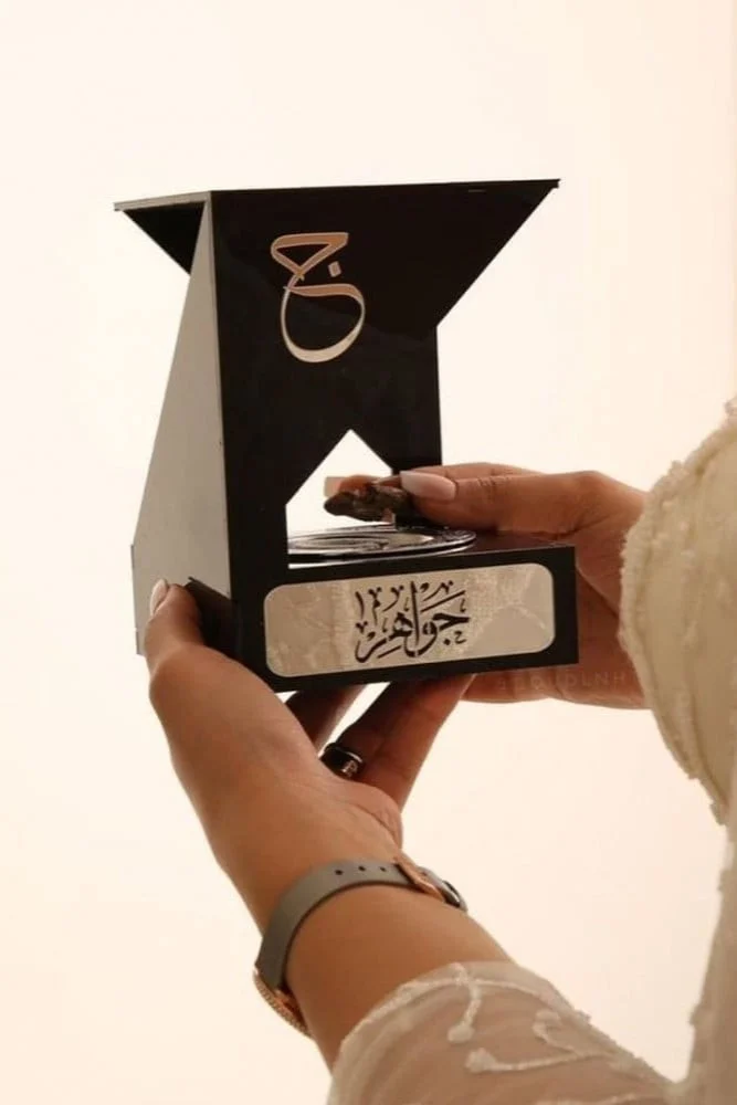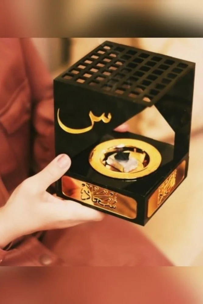 – تحتوي مبخرة الحرف العربي على صندوق بخور، صينية تحمل الاسم المطلوب، مبخرة بحجم كبير.